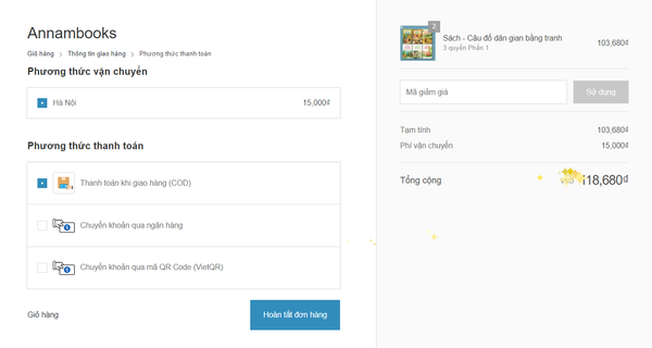 - Annambooks có 3 phương thức thanh toán chính, bạn hoàn toàn có thể lựa chọn phương thức phù hợp với nhu cầu của bản thân.