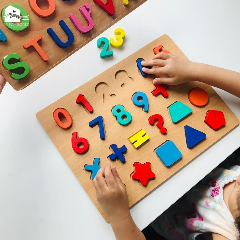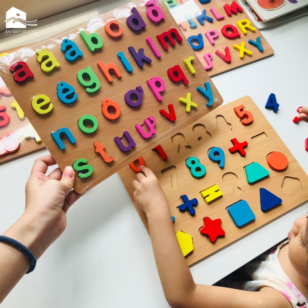 Bảng chữ cái, chữ số bằng gỗ nổi cho bé làm quen với chữ, số & phát triển tư duy