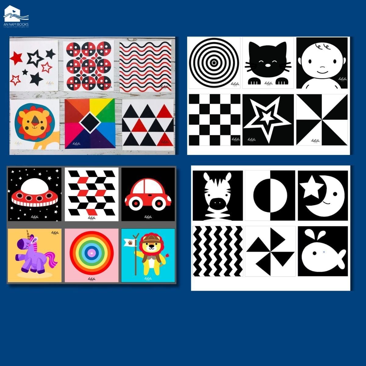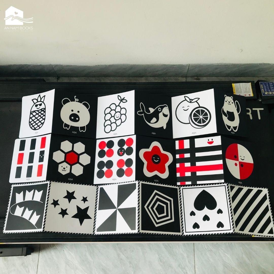 Bộ 6 thẻ dán tường KÍCH THÍCH THỊ GIÁC cho bé sơ sinh giúp bé phát triển toàn diện