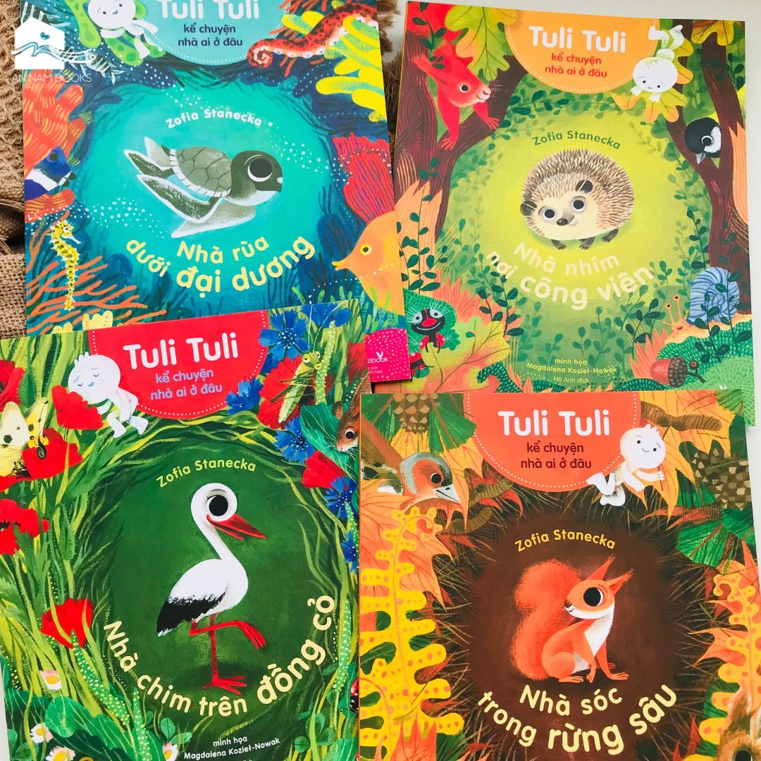 𝐓𝐮𝐥𝐢 𝐓𝐮𝐥𝐢 kể chuyện nhà ai ở đâu? là một bộ sách khoa học được kể với minh họa rất sinh động. Mỗi cuốn sách dẫn dắt trẻ bước vào hành trình khám phá đầy thú vị về môi trường sống của các loài động vật: Cò, Nhím, Sóc, Rùa giúp trẻ hiểu và sống hòa ái hơn với thế giới xung quanh mình.