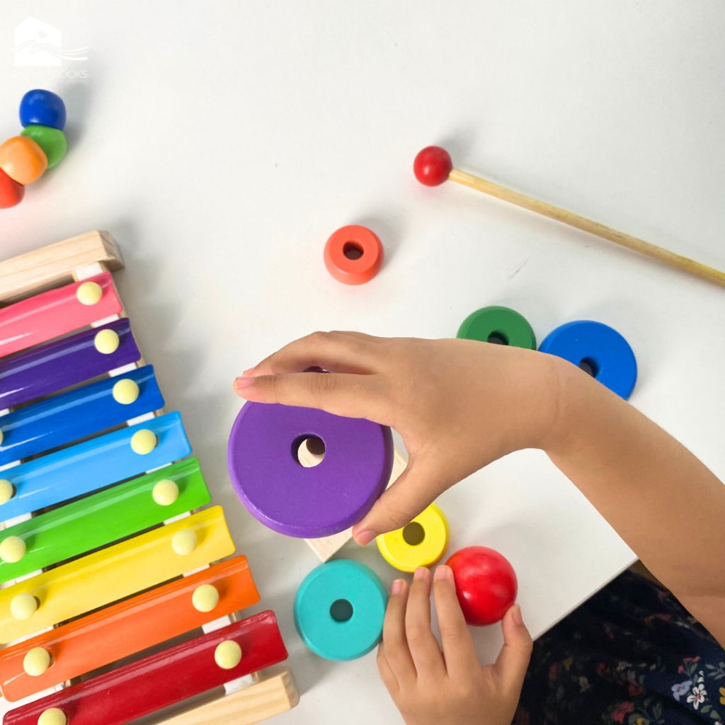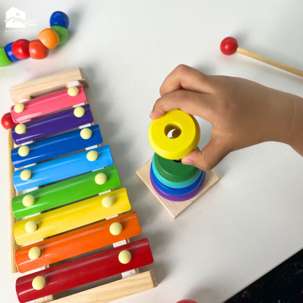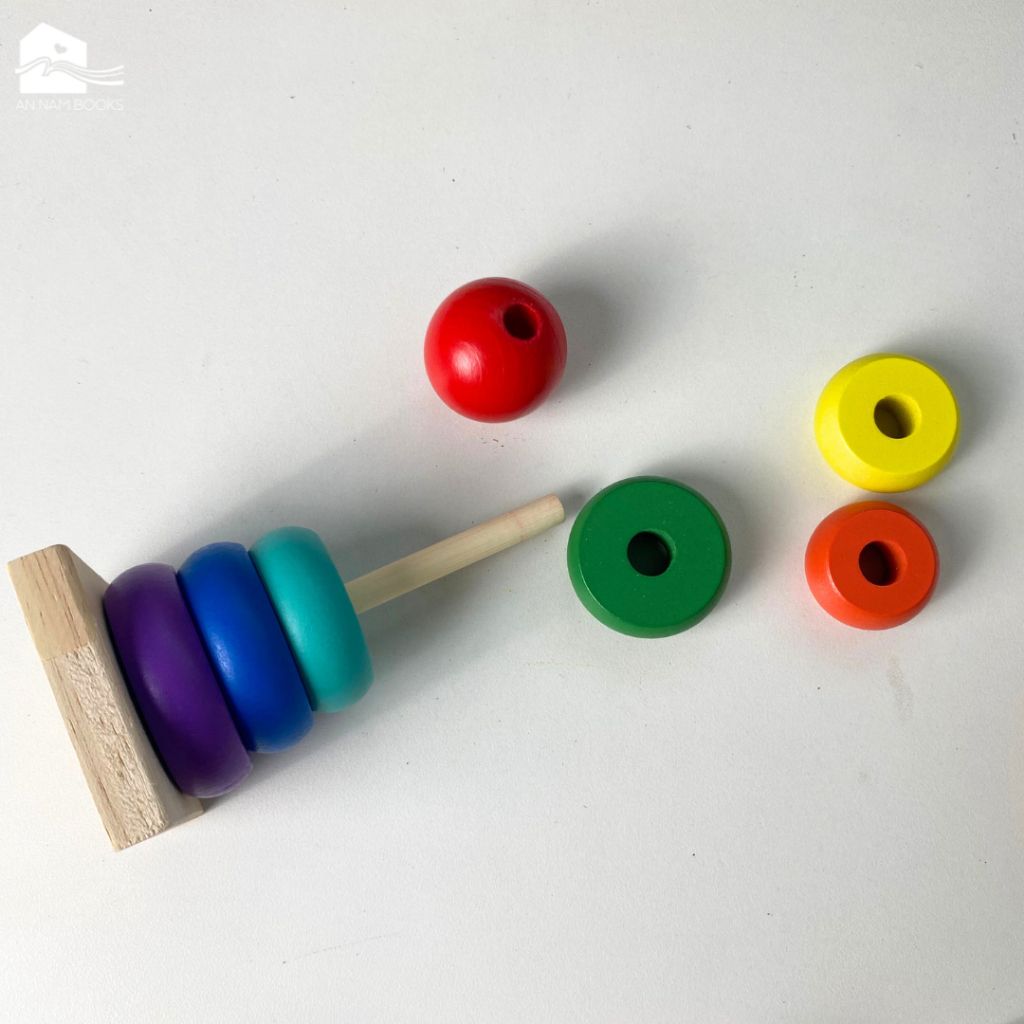 Đồ chơi MONTESSORI - Tháp cầu vồng gỗ size nhỏ cho bé - Thả hình tháp chồng mini 7 màu