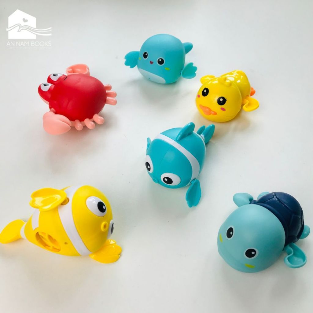 Đồ chơi nhà tắm: Cá voi, cá hề, cua, rùa, vịt vặn cót vui nhộn