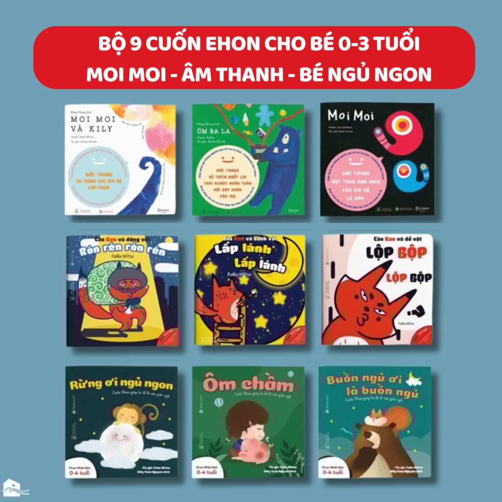 Combo 9 cuốn Ehon bao gồm 3 bộ "Moi moi và những người bạn", "Điều kỳ diệu của âm thanh", "Buồn ngủ ơi là buồn ngủ". Đây là combo sách vừa vặn cho bé từ 0-2 tuổi với các câu chuyện đơn giản, dễ đọc và màu sắc kích thích thị giác.