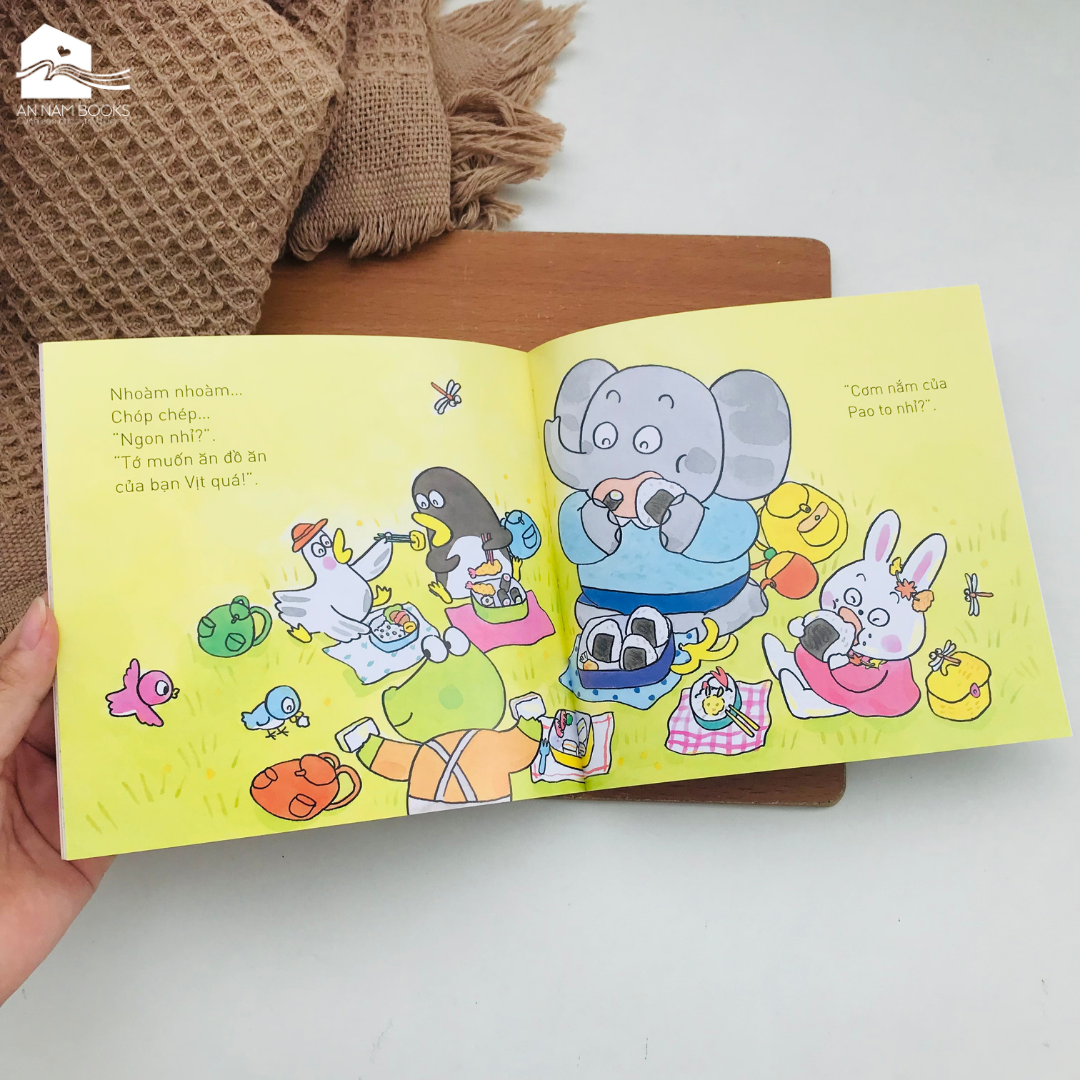 Bộ truyện ehon Nhật Bản “Pao và những người bạn” gồm 29 tập là tuyển tập những câu chuyện ehon nhẹ nhàng, vui tươi cho các bé từ 0-6 tuổi. Mỗi tập là một câu chuyện gần gũi, đáng yêu xảy ra xung quanh cuộc sống hàng ngày của Voi Pao và các bạn Thỏ, Cá sấu, Vịt và Chim cánh cụt.