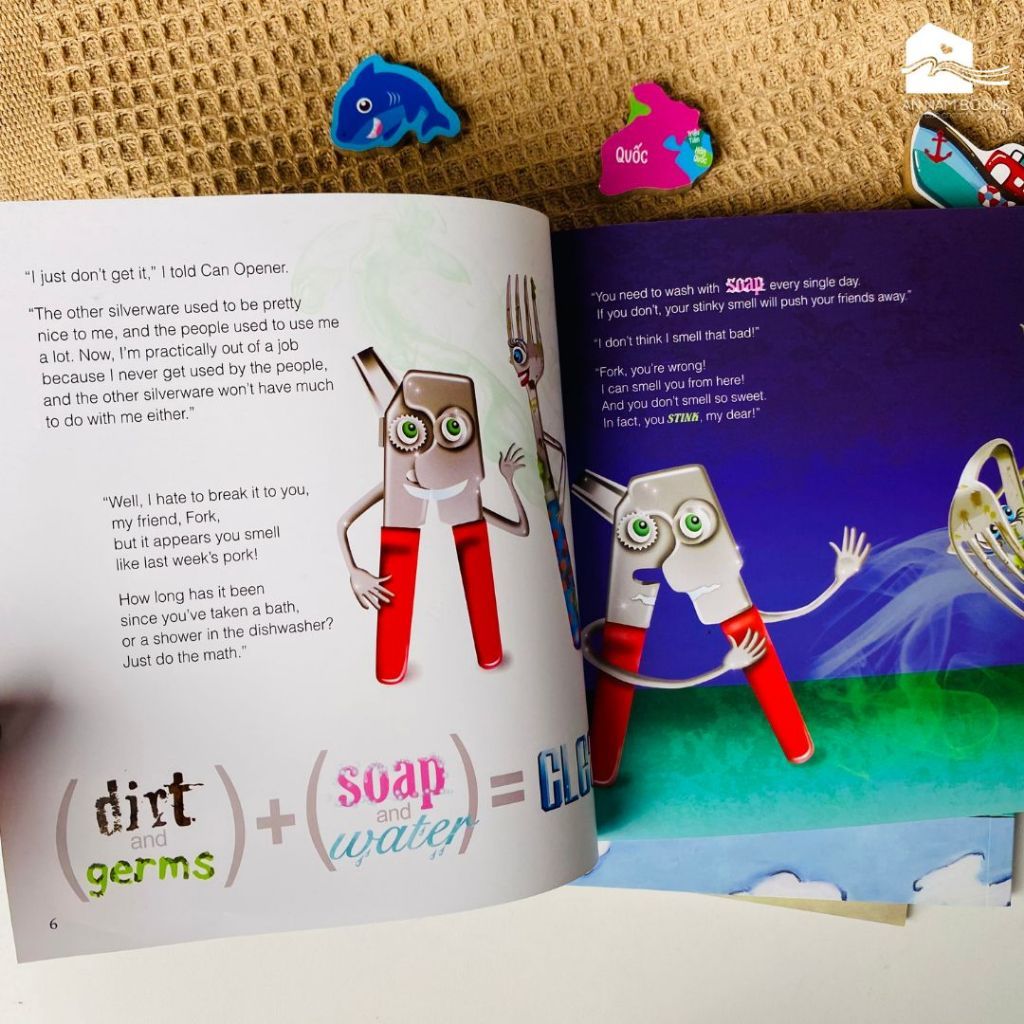 NỘI DUNG SÁCH Cuốn sách song ngữ cho bé 3-8 tuổi "Hôi quá...mất vệ sinh quá!" đã mang đến cách tiếp cận với một vấn đề rất cá nhân – vệ sinh tốt. Sử dụng những đồ bằng bạc như những ngôi sao, Julia giúp giải thích tầm quan trọng của việc tắm, gội, đánh răng và các vấn đề vệ sinh khác. Học sinh, các bậc phụ huynh, hay những nhà làm giáo dục sẽ được cười và cùng học với bạn Dĩa khi bạn Dĩa nhỏ phát hiện ra tầm quan trọng của việc vệ sinh cá nhân tốt và sự ảnh hưởng của nó lên mối quan hệ với người khác!