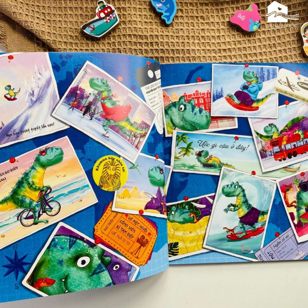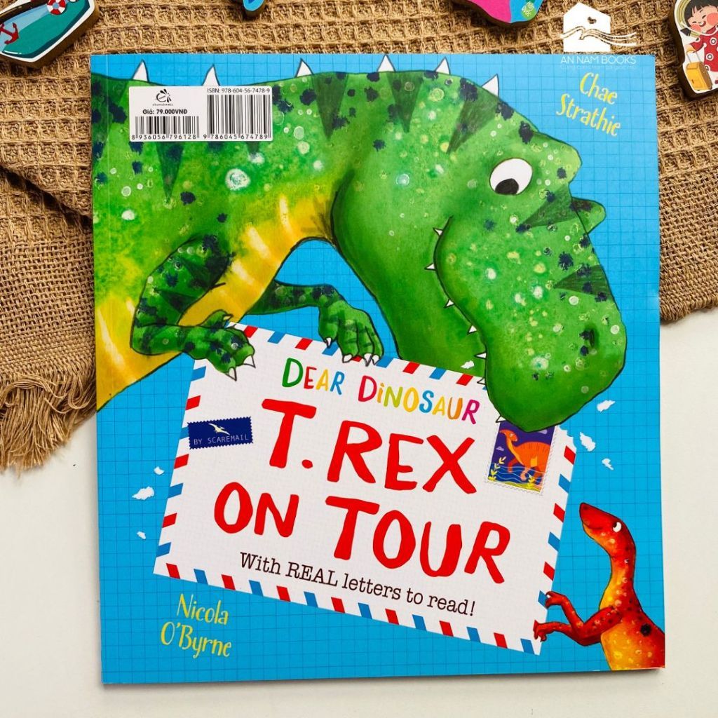 2 - Giới thiệu sách song ngữ cho bé "Khủng long thân mến - T. Rex du ngoạn" Một ngày nọ Max hào hứng đến bảo tàng để gặp các bạn Khủng long, nhưng bất ngờ là tất cả các bạn khủng long đều đã biến mất. Thì ra là “các bạn ấy đang đi lưu diễn đến các bảo tàng trên khắp thế giới cùng với cô Khủng long Dora”. Max đã quyết định viết thư cho T. Rex để báo cho bạn ấy biết rằng cậu đã đến bảo tàng và mong sẽ sớm được gặp lại T. Rex cùng các bạn khủng long. Và rồi, Max thường xuyên trao đổi thư từ với T. Rex và được nghe Rex kể về chuyến phiêu lưu thú vị của các bạn ấy.
